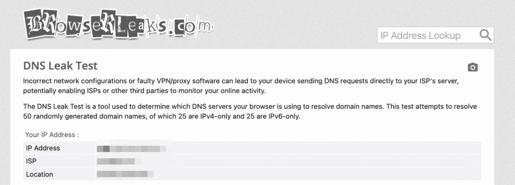 BrowserLeaks.com performs one of the most detailed DNS leak tests up to 50 queries, including IPv4 and IPv6.