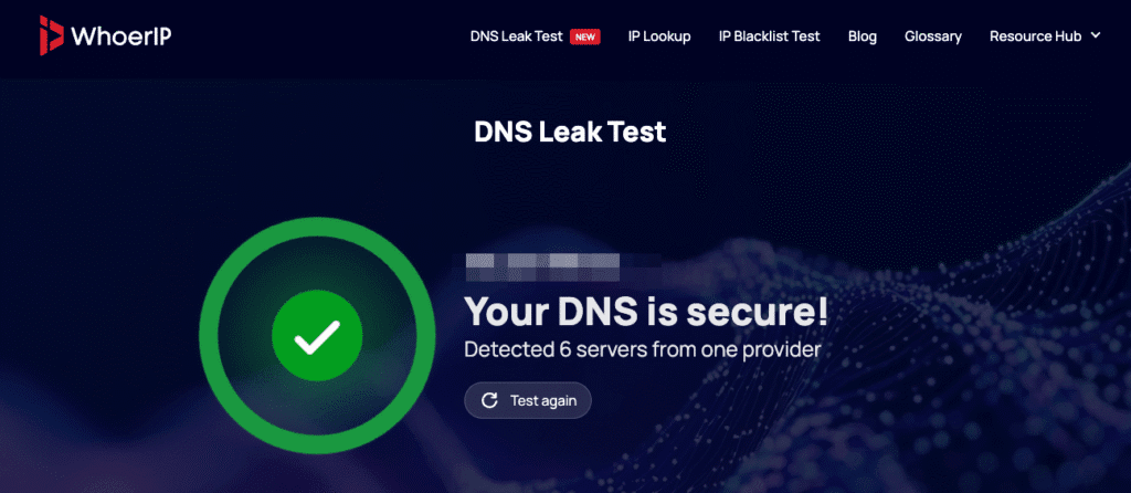 Just go to a trusted testing site like whoerip.com and click “DNS Leak Test” or “Advanced Test.” The tool will send a few DNS requests and show the servers that respond if you see your ISP there, you’ve got a leak.
