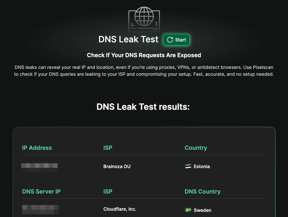 | Pixelscan.net | Part of a professional anti-detect suite; highly precise DNS detection; minimal, one-click interface. | Professionals using anti-detect browsers and privacy testers. |