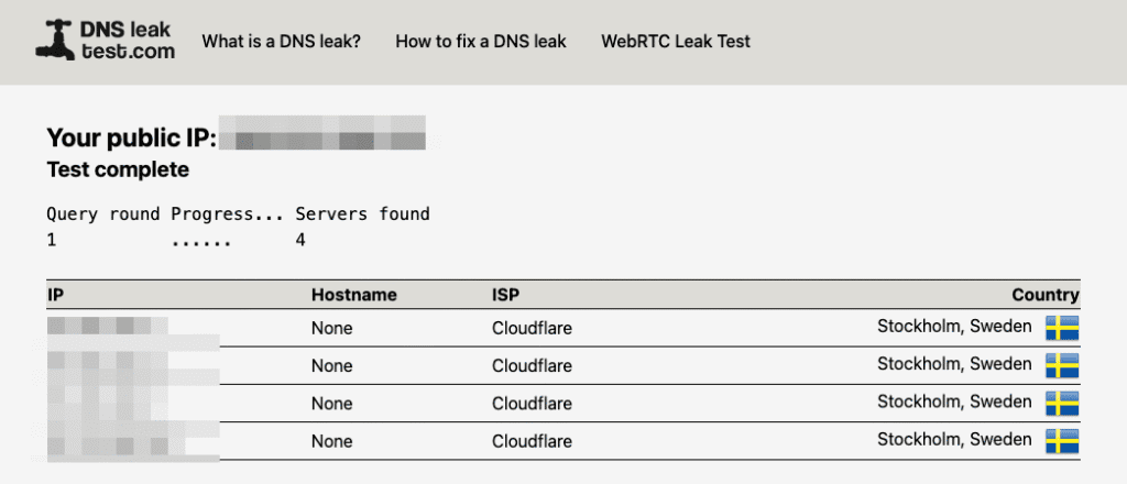 | All DNS servers belong to your VPN and match its country | No DNS leak – your VPN is working correctly. |